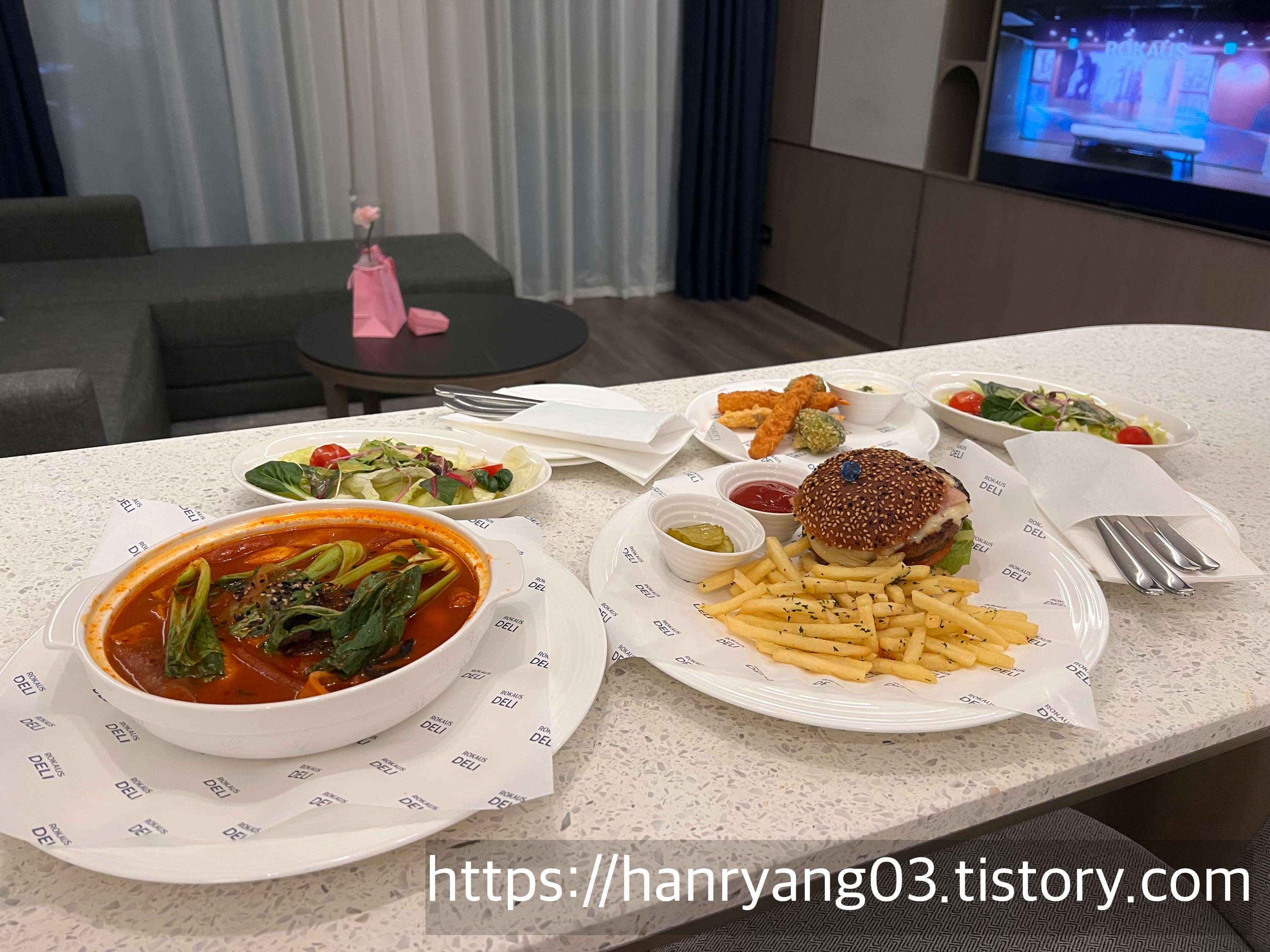 버거의 경우, 생각보다 돈 값을 한다고 느꼈다. 다른 호텔의 룸서비스 버거와 견주어 절대 꿀리지 않는 맛이다. 마라떡볶이는 마라맛도 상당히 괜찮았고, 떡이나 소시지도 적당히 들어갔으며, 튀김도 아주 잘 튀겨졌다.