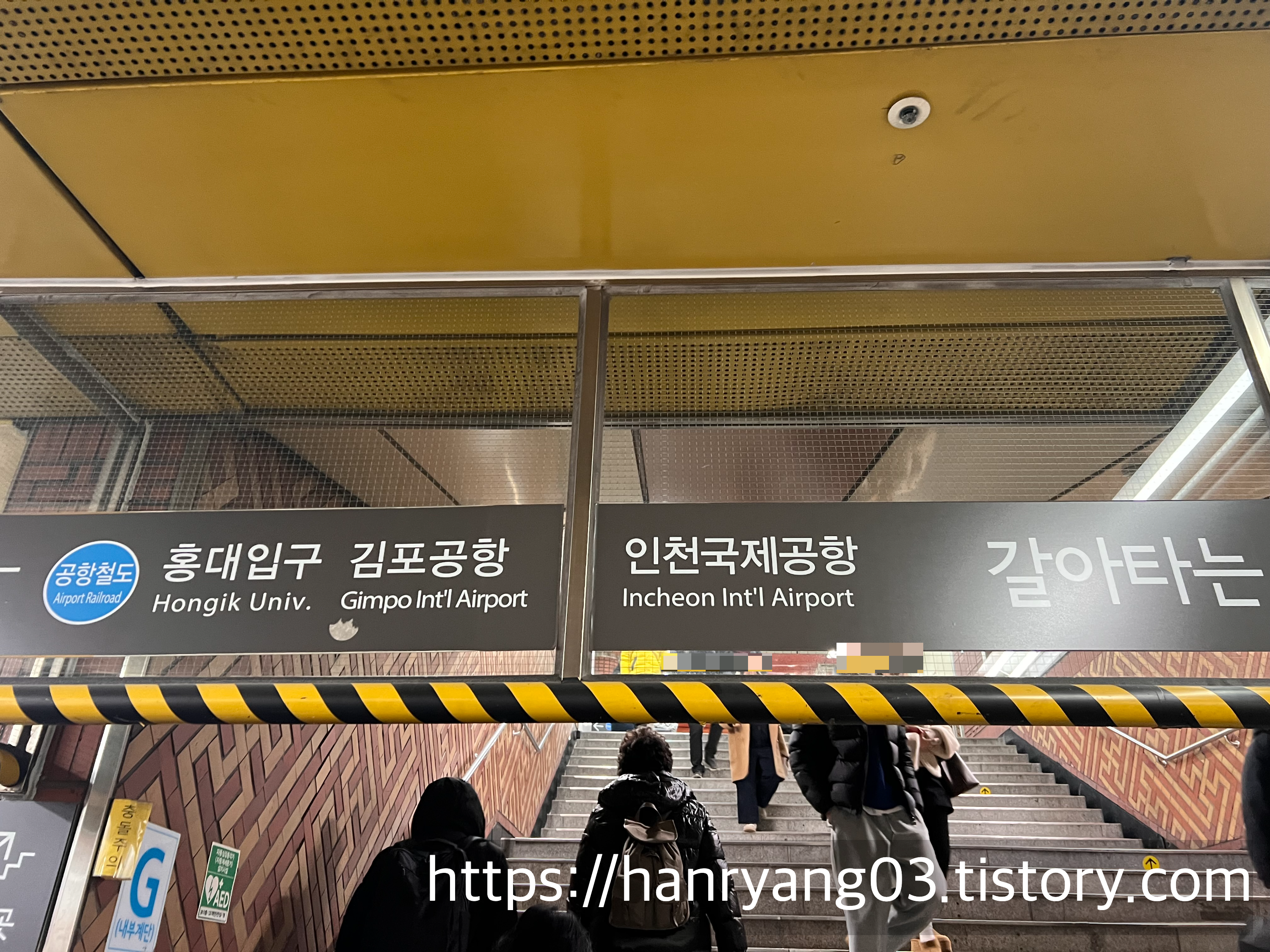 계단을 나와서 우회전을 하면 바로 공항철도 환승개찰구로 내려가는 에스컬레이터가 있다.