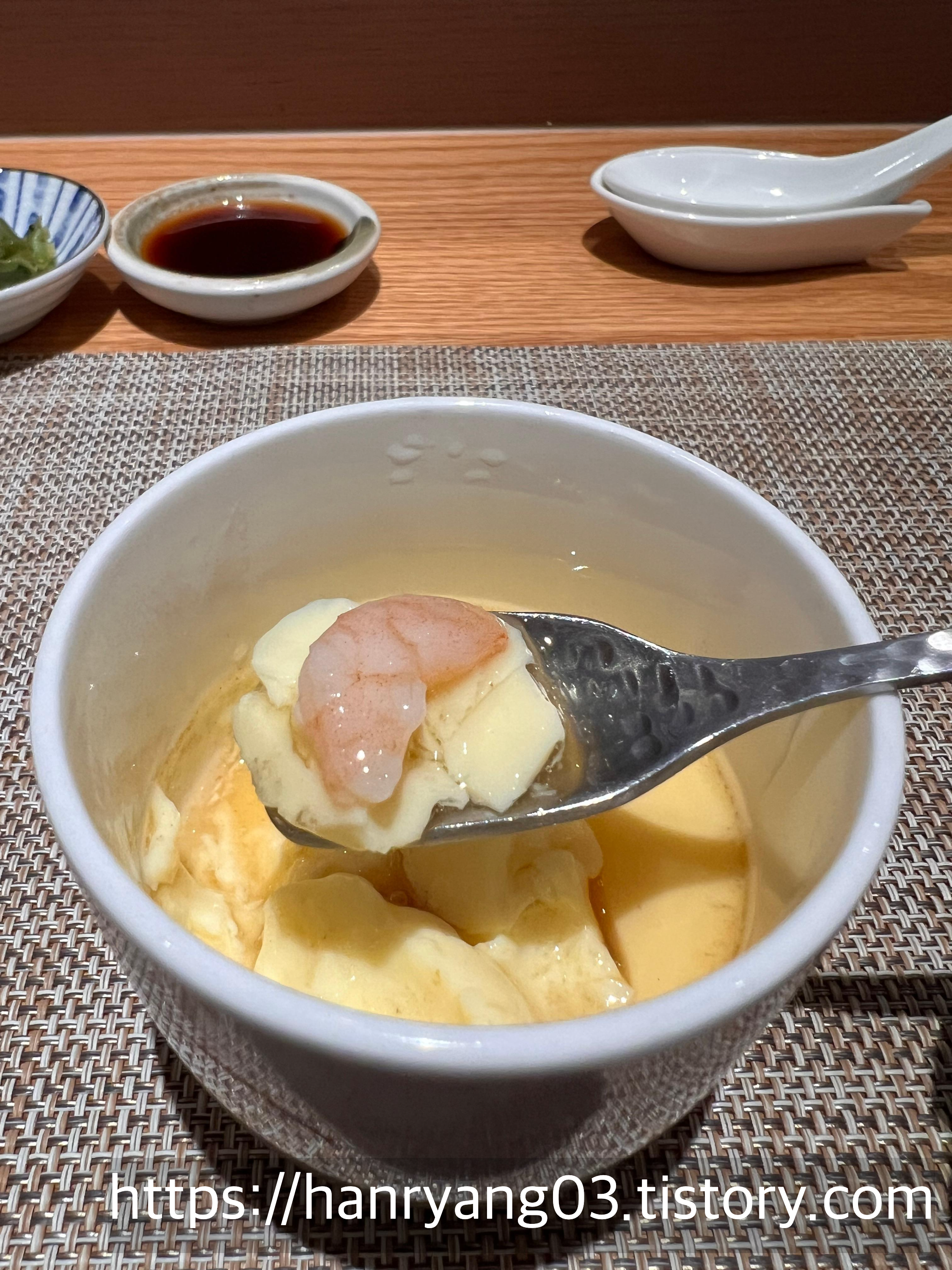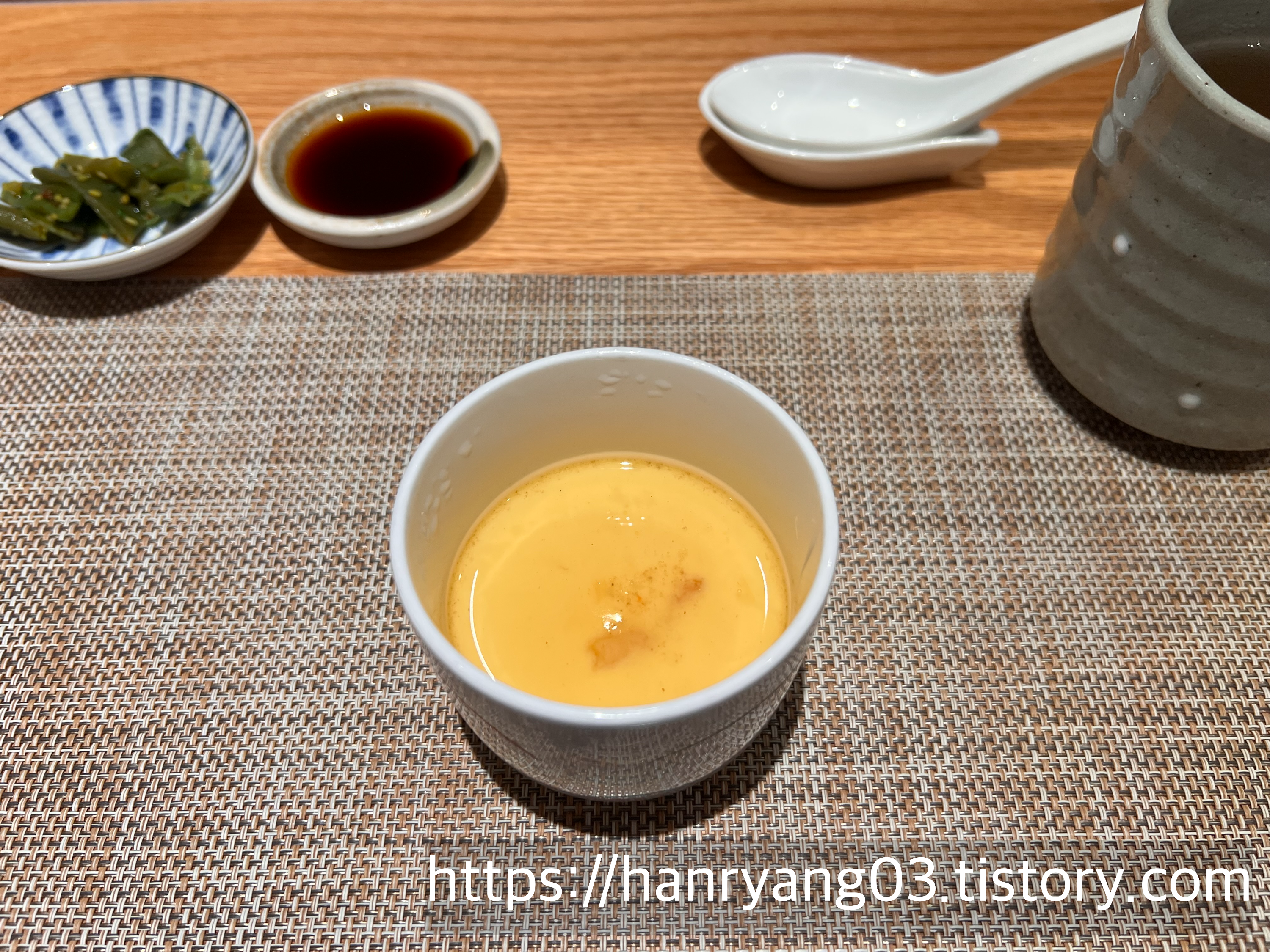잘 만들어진 교쿠다. 근데 이제 가운데는 카스테라를 먹는 것 같은 부드러움이 느껴졌고, 가장자리 갈색 부분은 쫄깃한 식감이 느껴졌다. 어떻게 계란으로 이런걸 만들 수 있는걸까?
