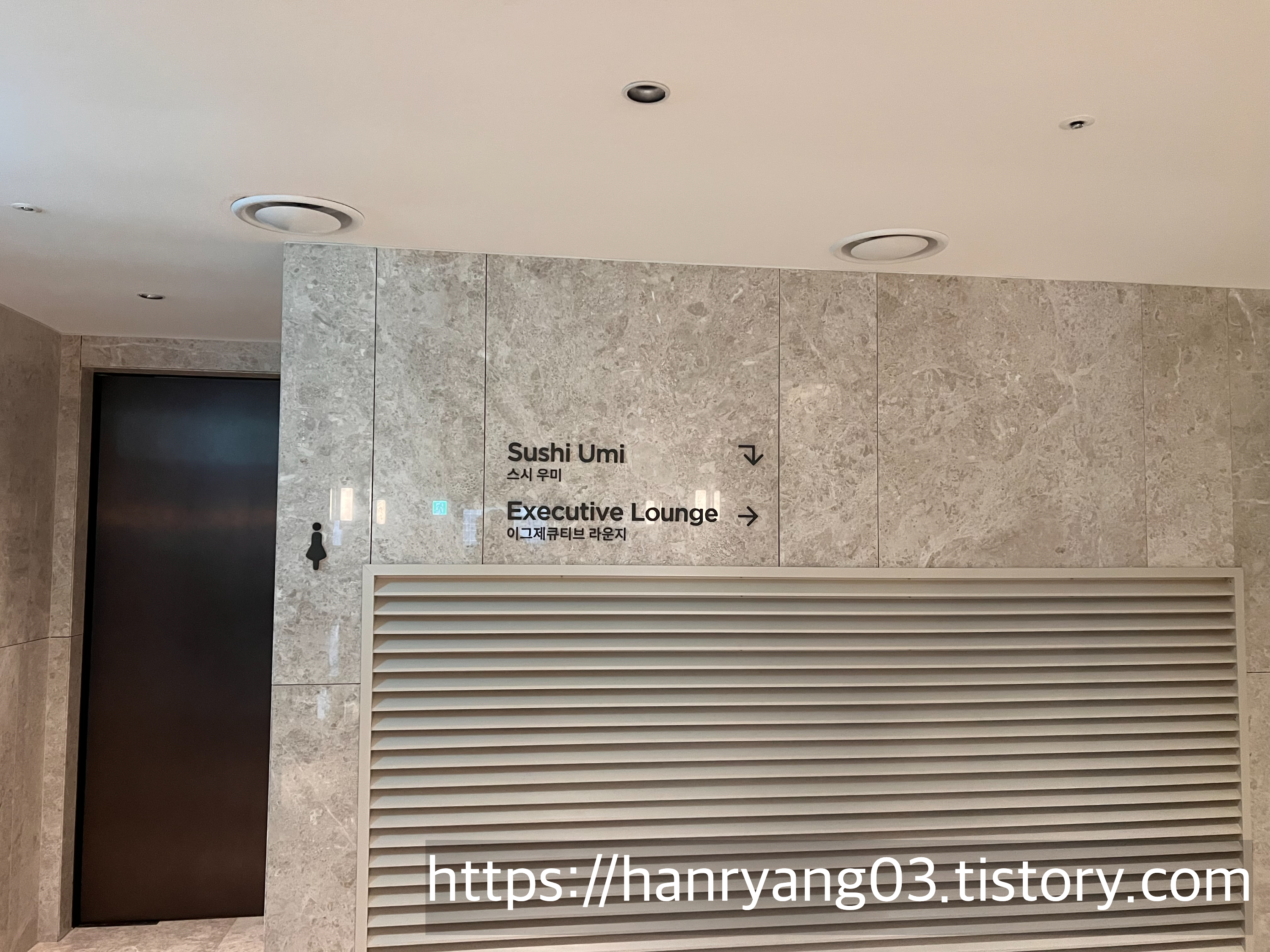 엘리베이터에서 내리면 바로 스시우미와 이그제큐티브 라운지로 가는 길이 나온다.