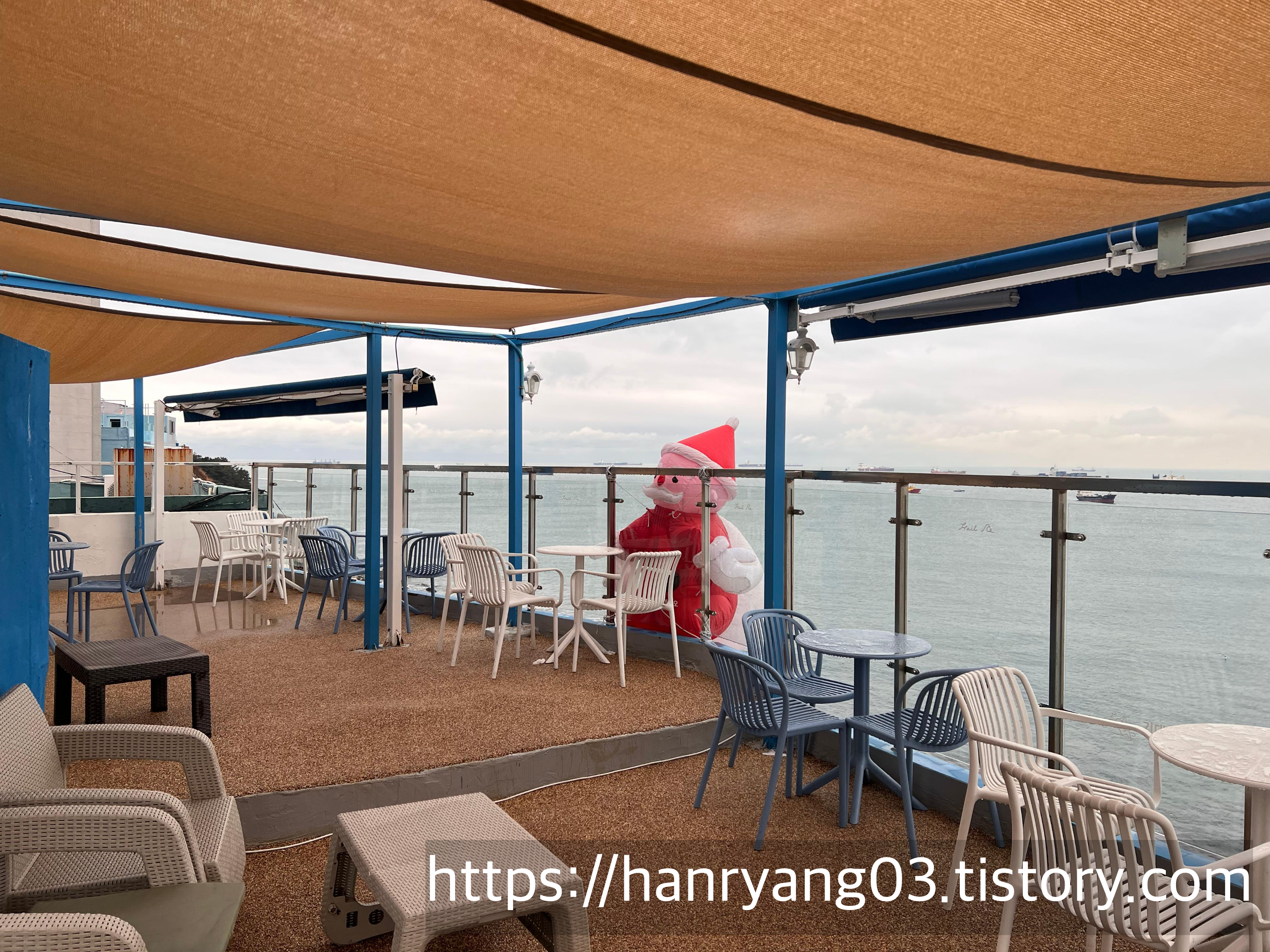 탁 트인 오션뷰와 커피 한 잔의 여유를 즐길 수 있다. 방문 당일은 오전에 비가 왔어서 이용하지는 못했다.