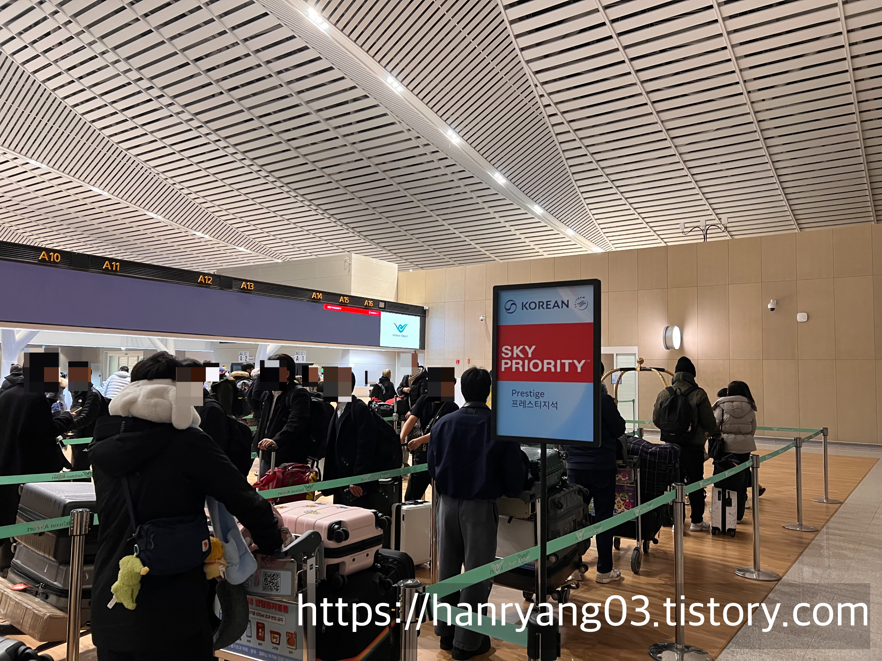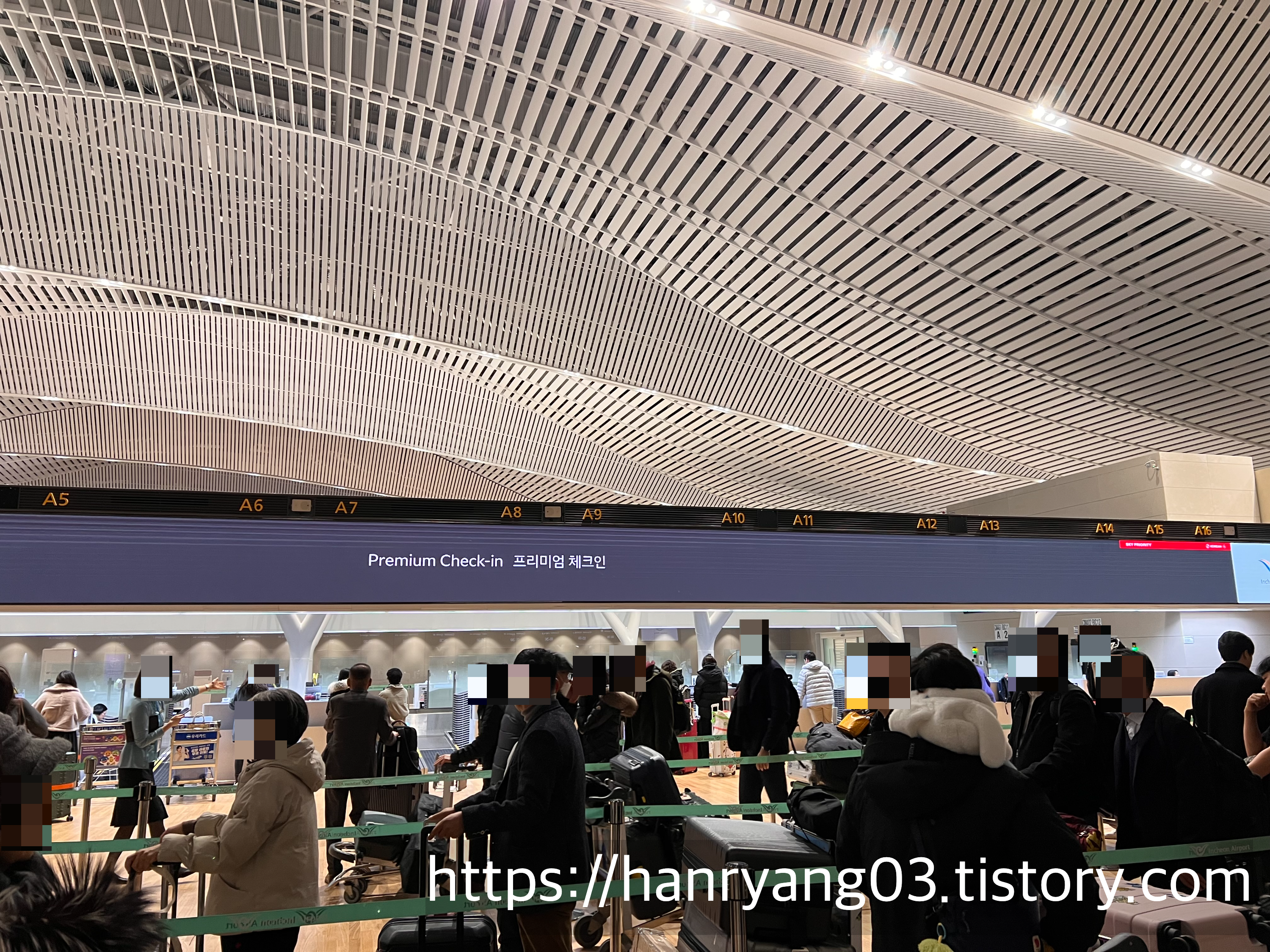 다른 일반 승객들과 엮이지 않고 프라이빗하게 체크인을 할 수 있다는 장점이 있지만, 줄을 서야한다는 단점이 있다. 그래도 생각보다 줄이 빨리 줄어들어서 줄이 길다는 느낌은 크게 받지 않았다.