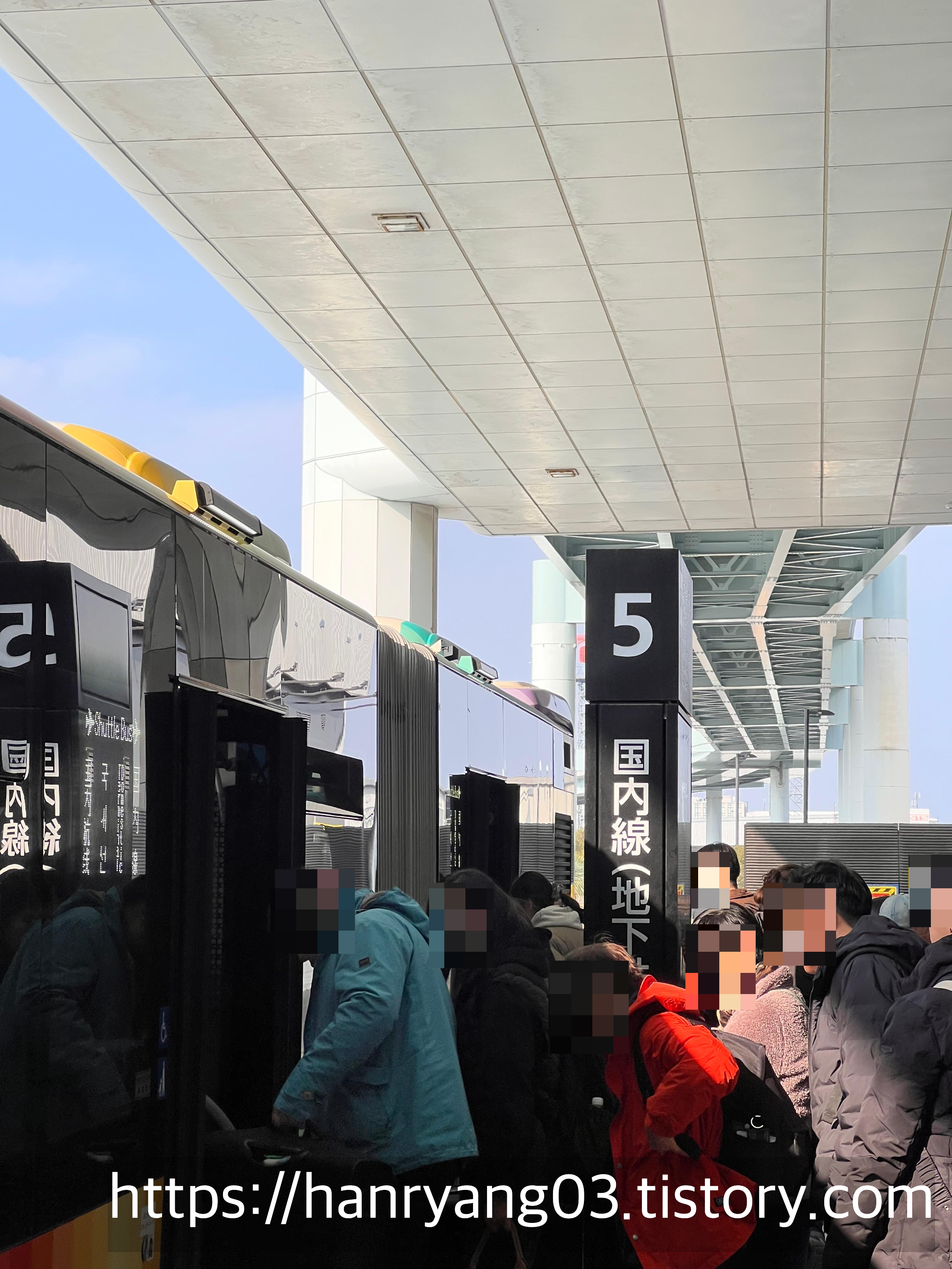 버스 타는 곳 5번을 향해 나가면 국내선 터미널로 가는 무료 셔틀버스를 이용할 수 있다.