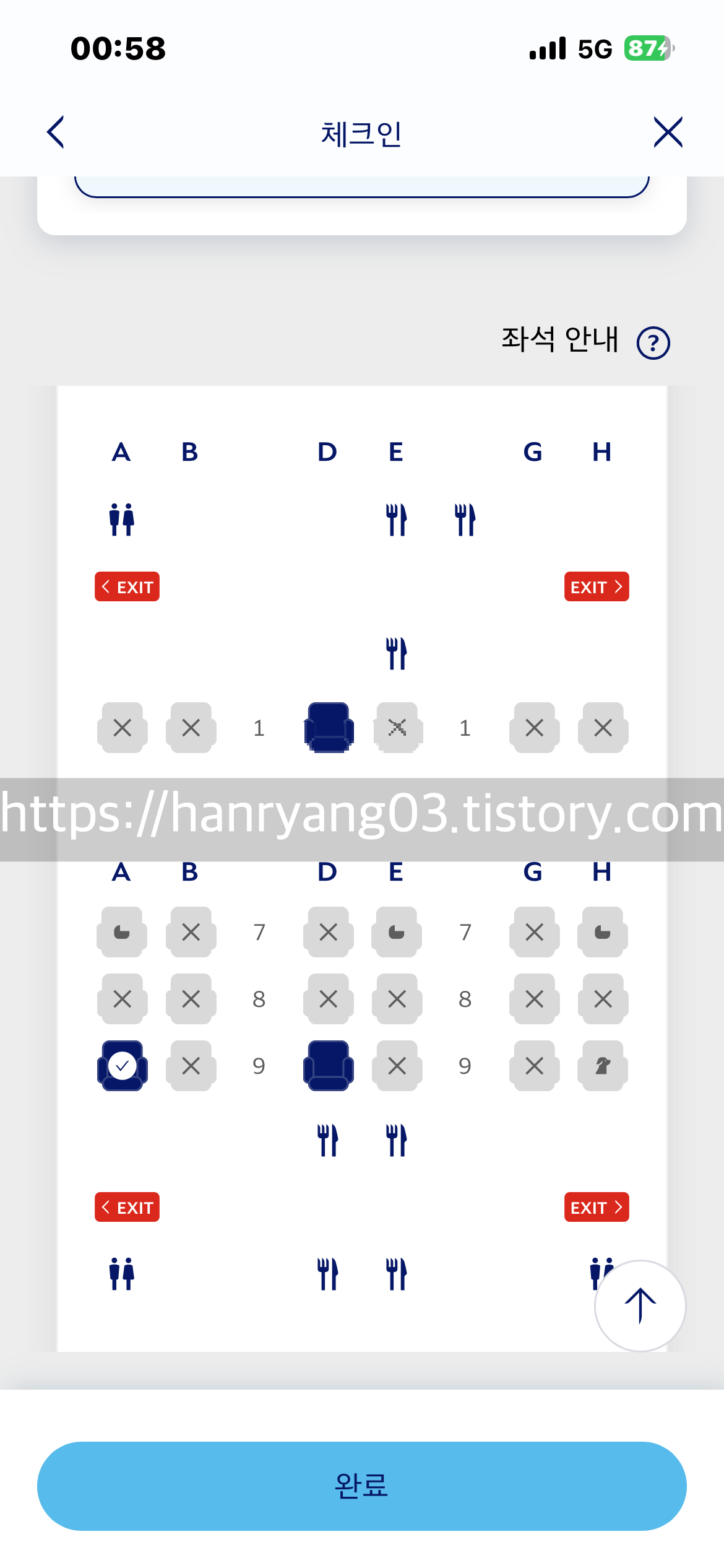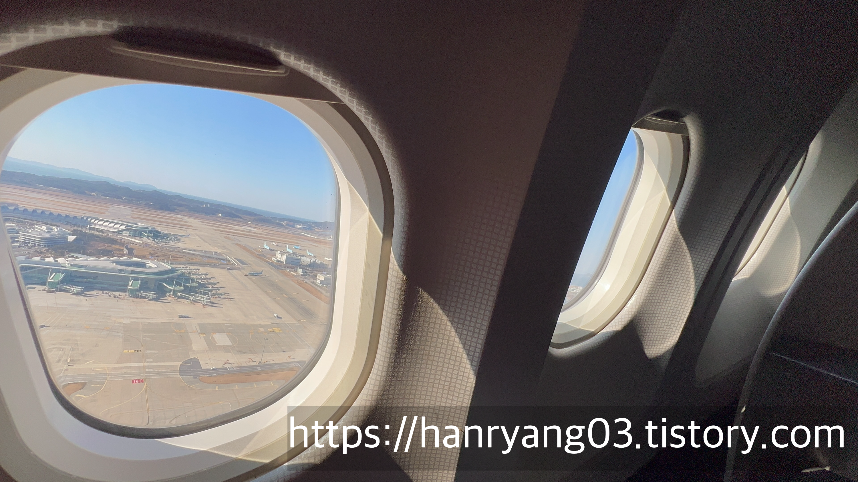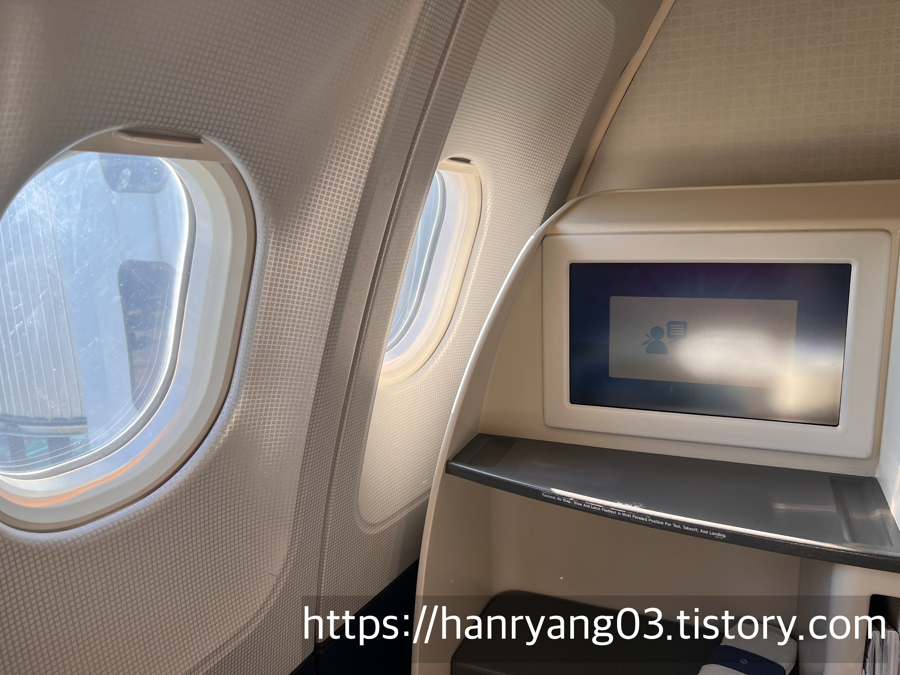 여행 당일날 아침까지도 잠겨있던 1열 창가 자리를 체크인 과정에서 배정받을 수 있었다. 아무래도 풀페어 티켓인 J등급인 것도 영향을 받은 것 같지만, 정확하게 어떤 기준으로 열리는지는 아직도 의문이다. 다만 필자의 경험 상 인천 출발편의 1열은 당일에 열리는 경우가 많으니 체크인 카운터에서 물어보는 것이 가장 정확하다.