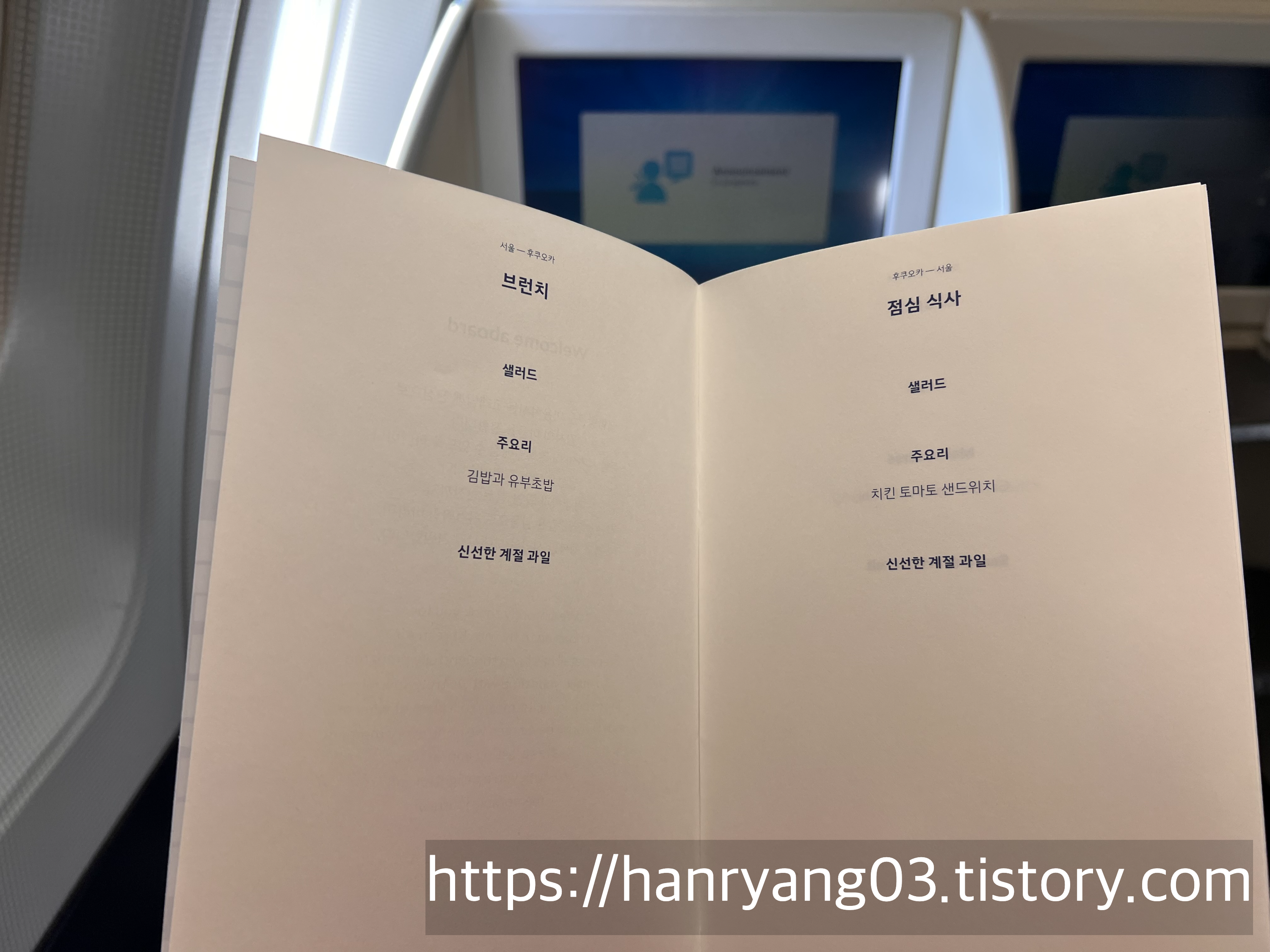 조금은 비교되긴 하지만, 워낙 운항시간이 짧다 보니 식사 속도가 느리면 식사가 끝나기도 전에 랜딩 준비를 해야 하는 상황이 생길 수도 있다 보니 조금 더 간소화된 느낌이었다.