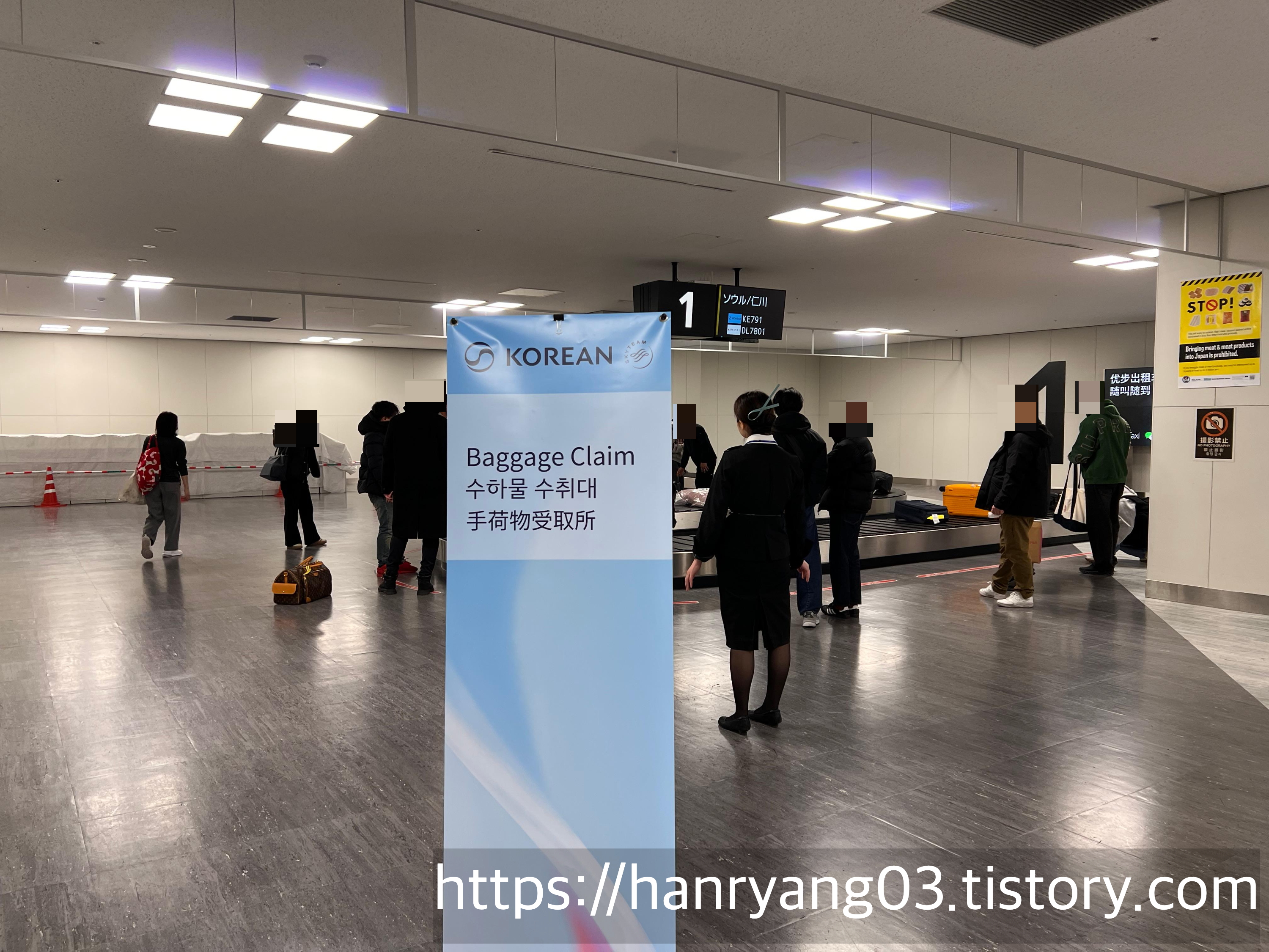 입국심사가 끝나고 내려오자마자 각 항공사마다 배너가 있었다. 전광판을 보고 오는게 가장 확실하지만 이런 배너가 있다면 더 빠르게 인지할 수 있어서 좋다.