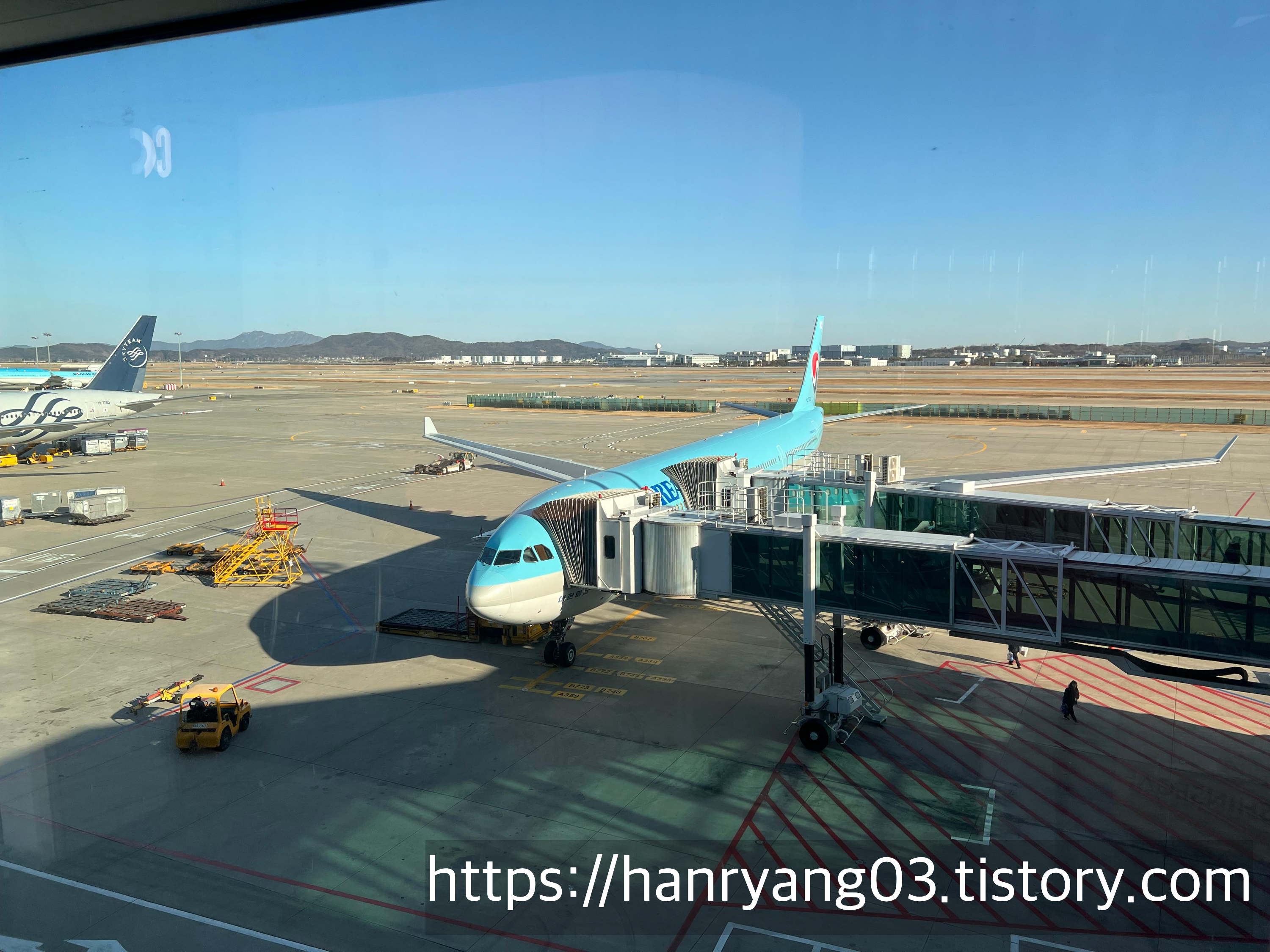구 도장이 적용되어있는 테일넘버 HL 7585 항공기였다. 신도장 항공기를 탑승하지 못해 아쉽다기보다는, 늘 보던 익숙한 맛이라 반가웠다.