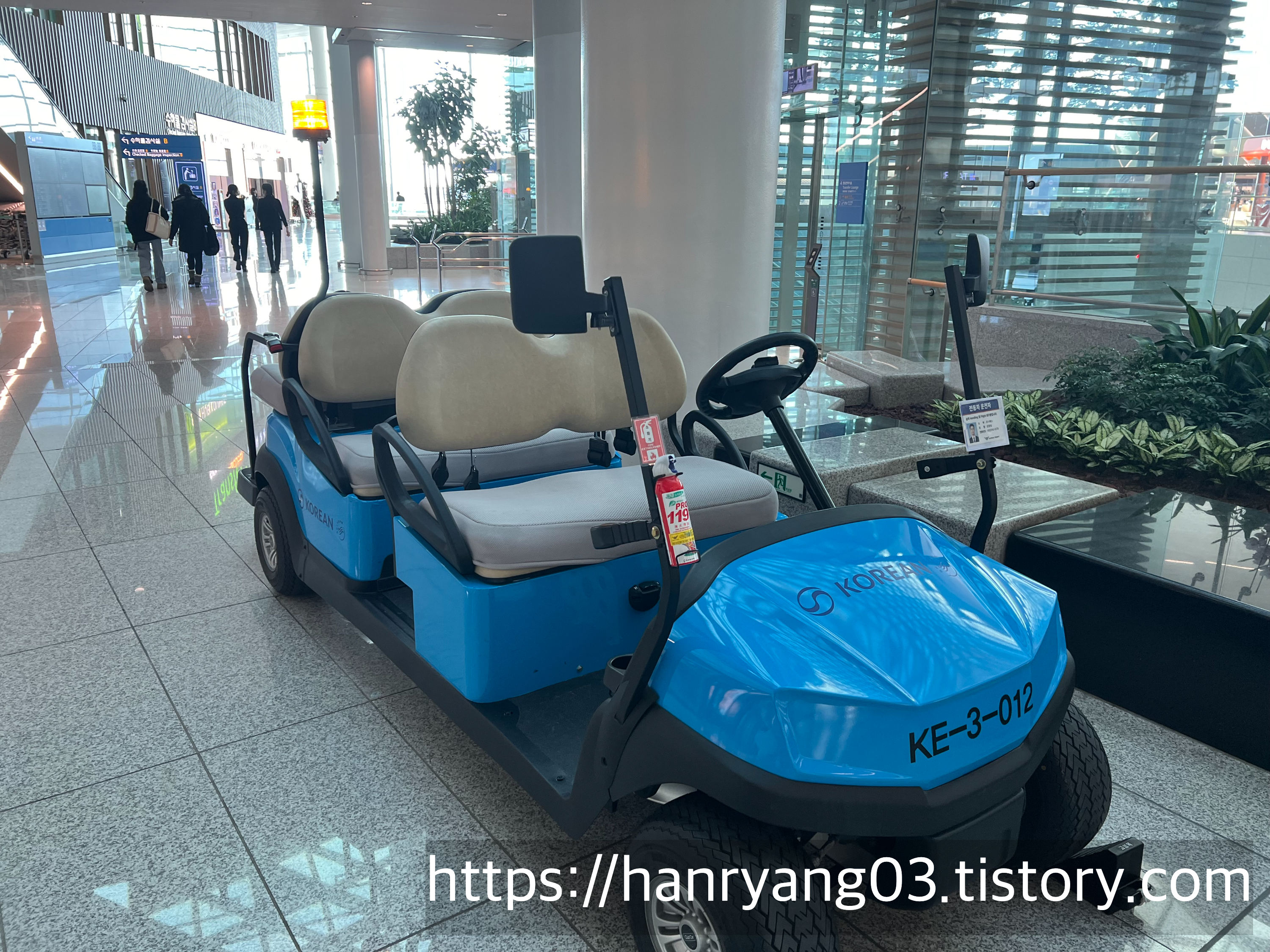 새 대한항공 CI가 적용된 전동카트가 있었다. 근데 운전자가 없어서 태워달라고 할 수도 없었다.