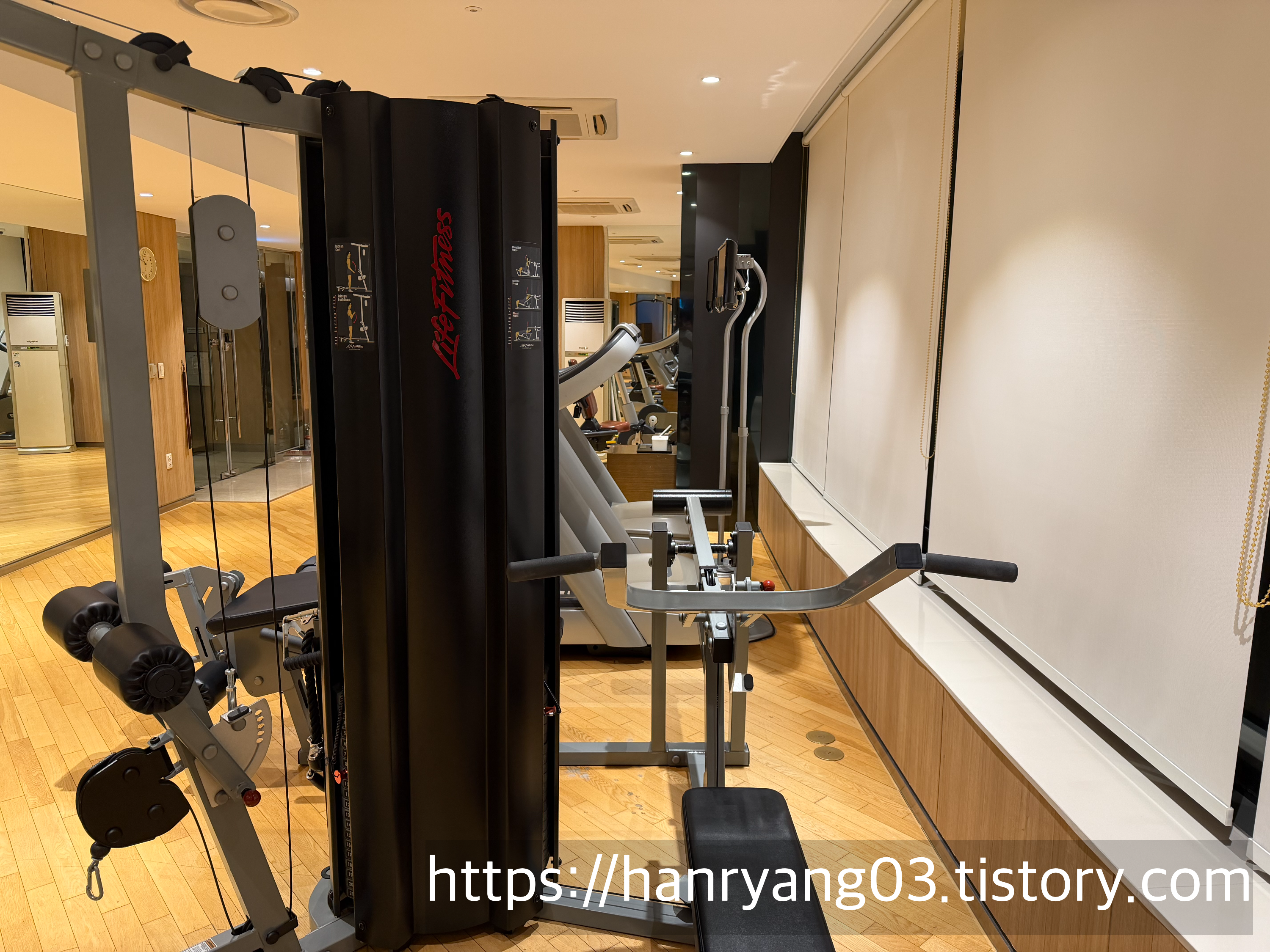 말년때부터 운동을 본격적으로 시작해서 아주 중요한 요소가 되어버린 헬스장이다. 호텔 2층에 위치해있다.