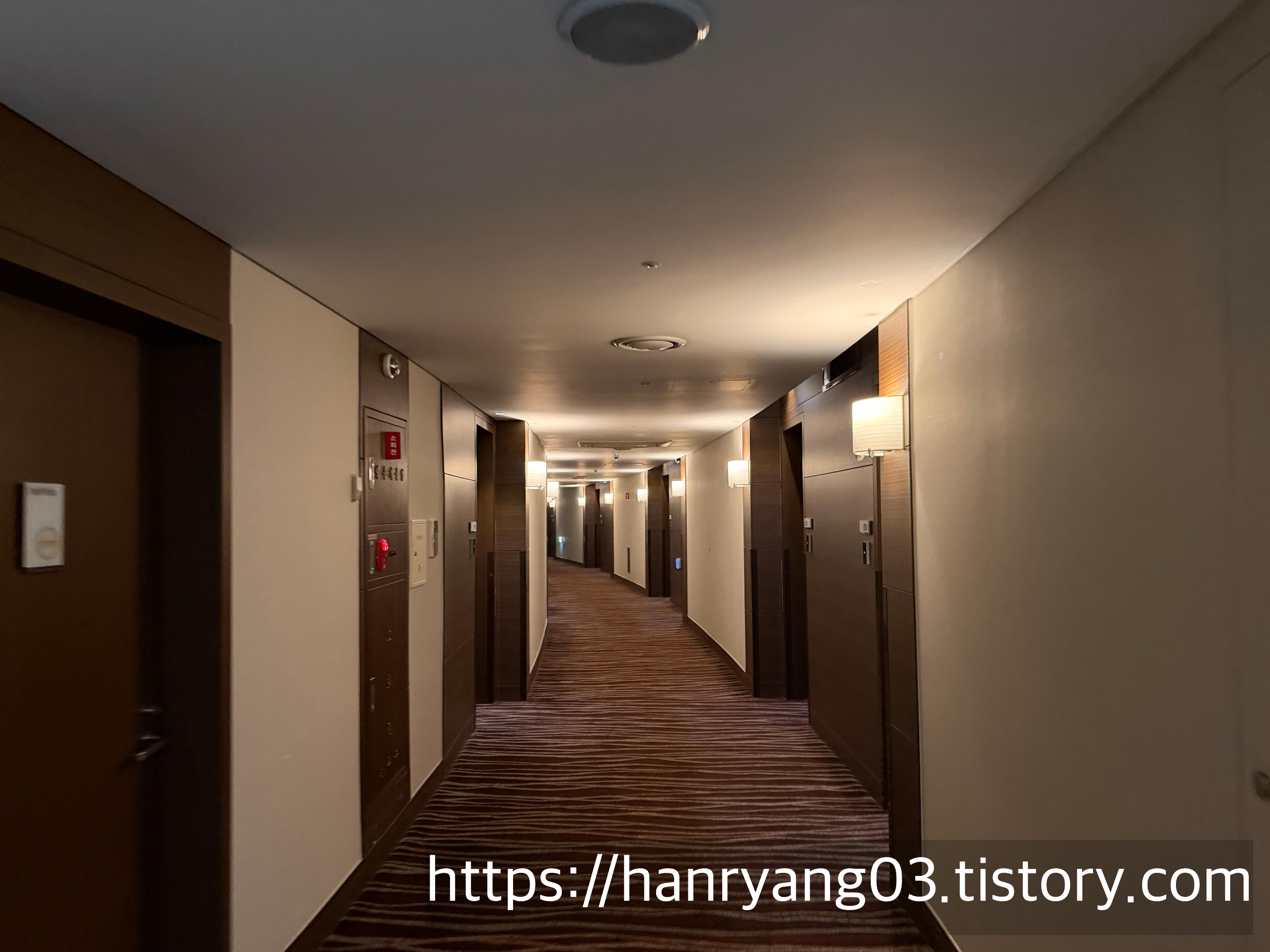 롯데시티호텔의 경쟁자인 신라스테이도 그렇지만, 가격 대비해서 고급스러운 복도 인테리어를 자랑한다. 다만 차이점은 신라스테이는 심플함에 중점을 뒀다면, 롯데시티호텔은 중후함에 중점을 둔 느낌이다.