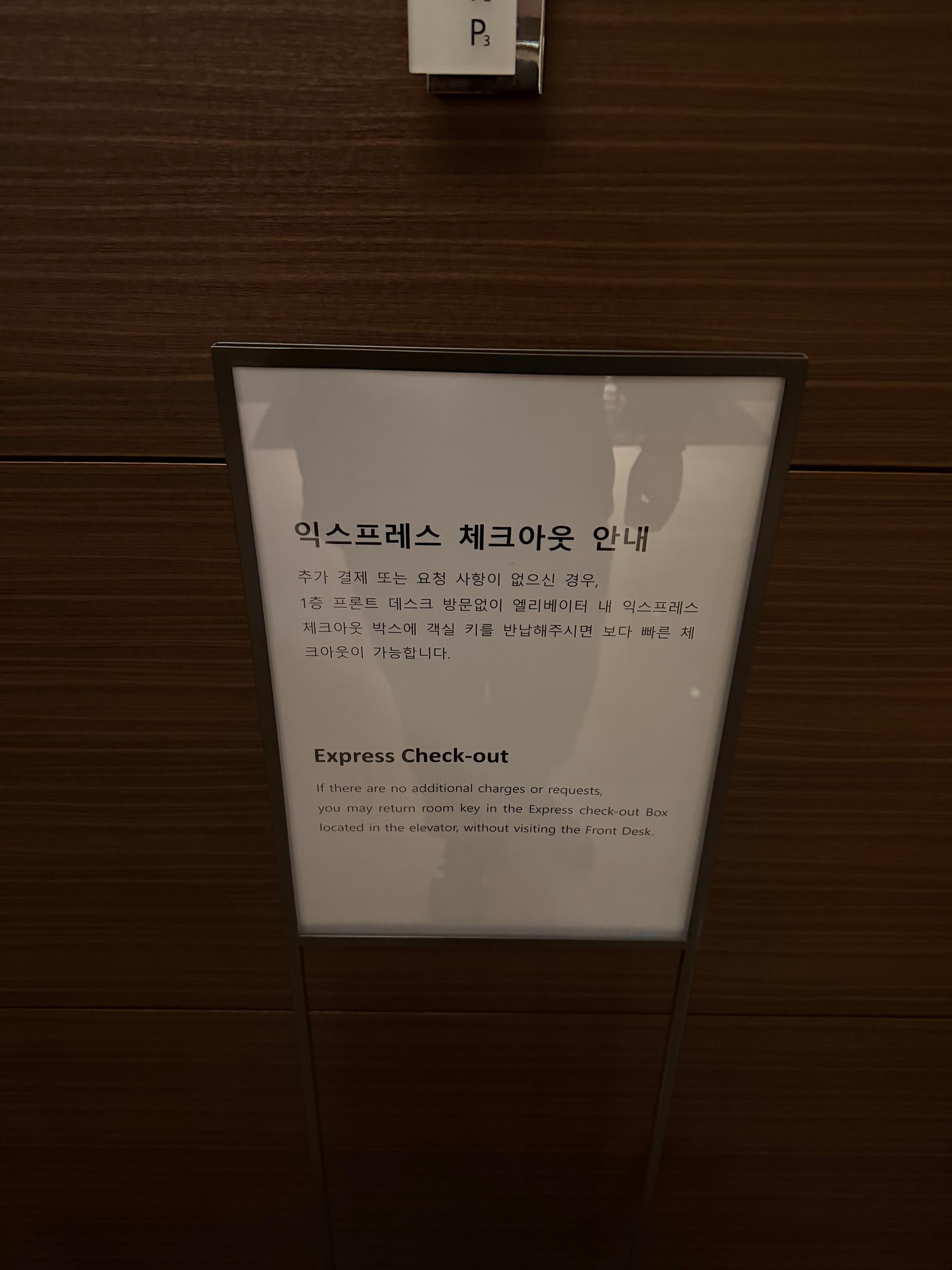 아무래도 비즈니스 호텔이다 보니 로비에 들리지 않고 빠르게 체크아웃을 할 수 있는 것 같다. 이런 디테일이 상당히 마음에 든다.