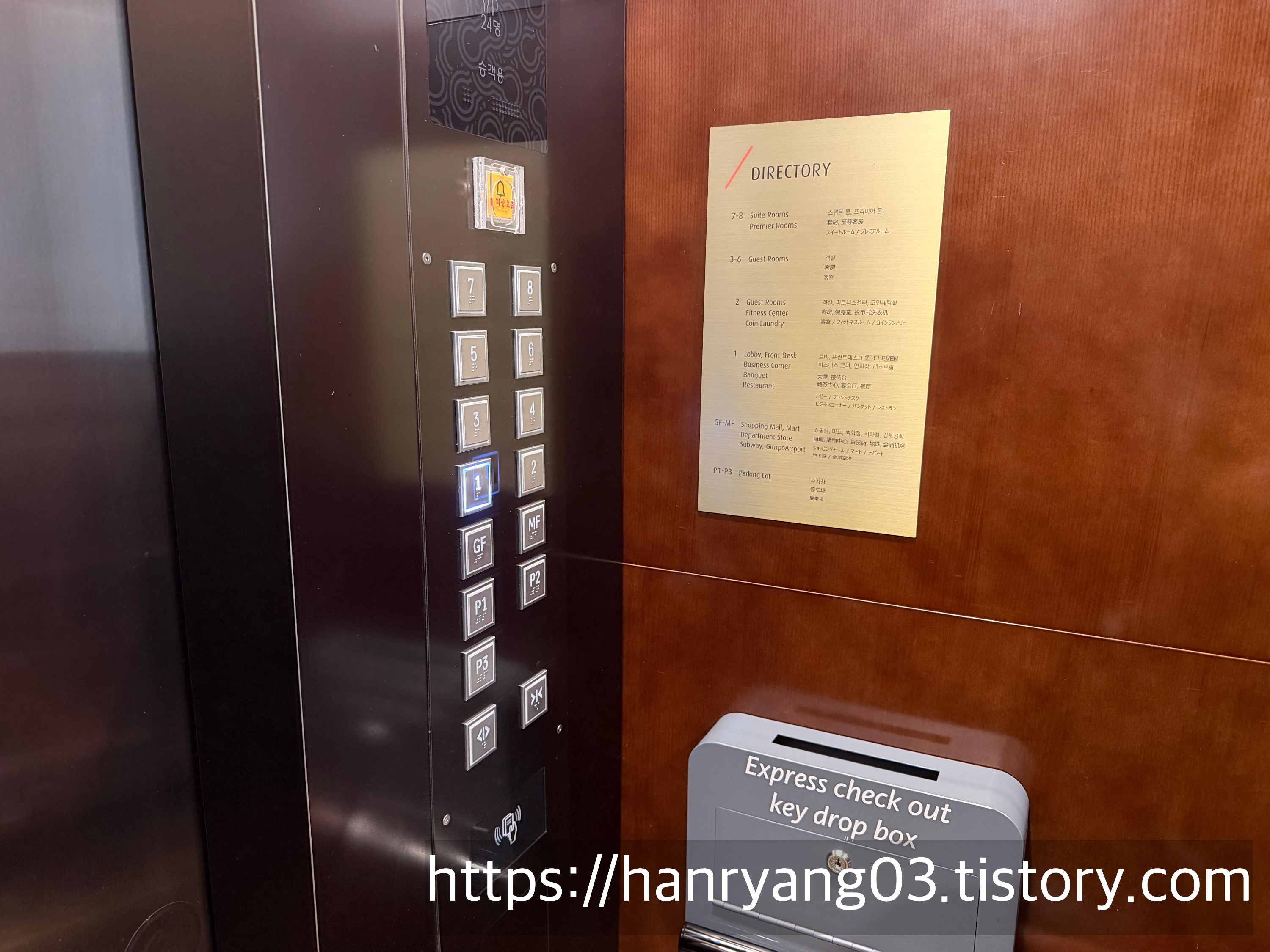 롯데몰에서 호텔 객실까지 바로 갈 수 있는 엘리베이터가 있다.