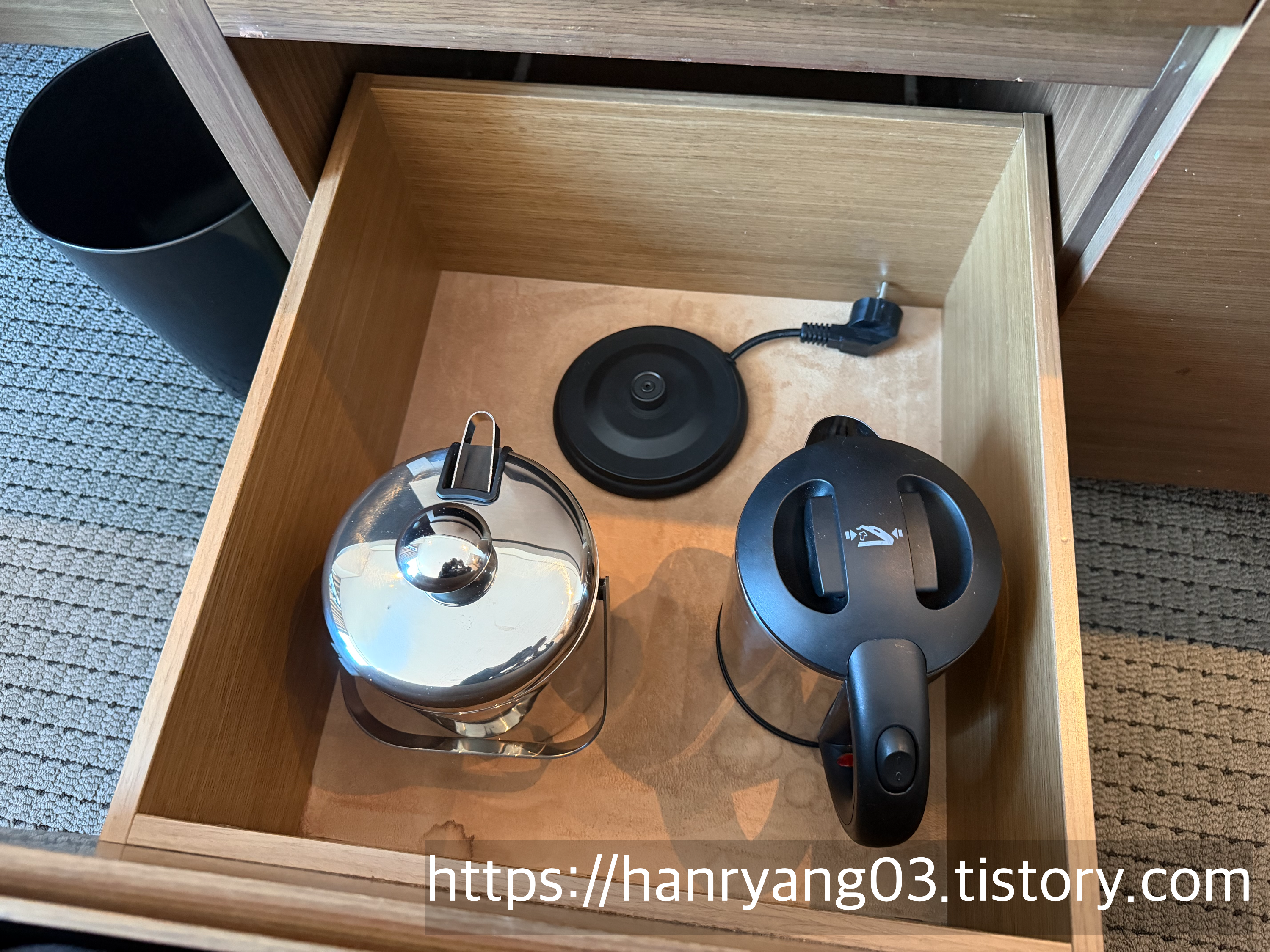 한참 찾아도 없어서 없나보다 했는데, 알고 보니 침대 옆 협탁 맨 아래칸에 있었다.