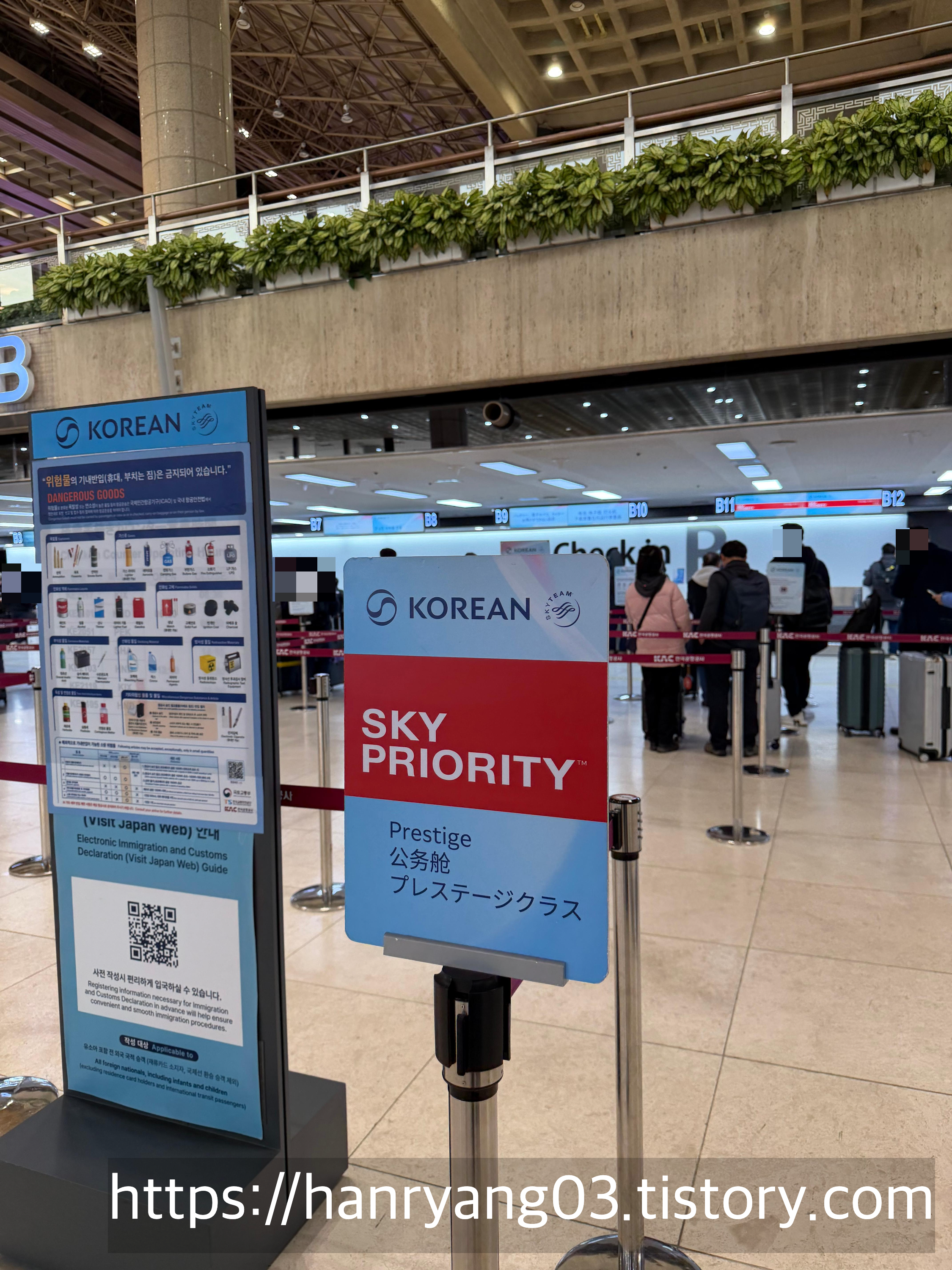 B11,B12 카운터가 스카이 프라이오리티 창구다. 이코노미 승객들과 달리 별도의 체크인 대기줄 없이 빠르게 체크인이 가능한 것이 장점이다.